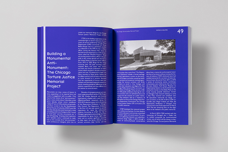 La publication est ancrée dans la ville de Chicago et ses enjeux actuels par cinq articles. Rédigés par cinq activistes locaux, ils touchent à des problématiques spatiales propres à ce territoire : gentrification, fermetures d’écoles, inégalités raciales, construction d’un mémorial pour les victimes de violences policières, etc.